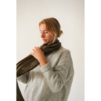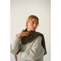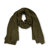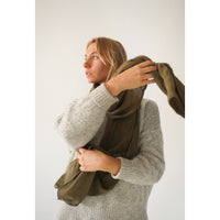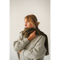 Bufanda artesanal de color verde musgo, de tacto suave y sin fleco.