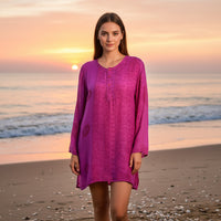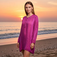 Kurta tejida con un rayón fino y suave con la que no pasarás calor. Además olvídate de tener que elegir qué llevar en tu maleta, esta kurta pesa menos de 100 gramos, y  ¡ocupa menos que un bañador!