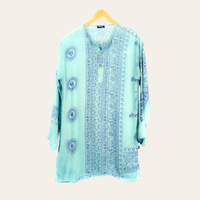 Kurta tejida con rayón suave con la que no pasarás calor. Además olvídate de tener que elegir qué llevar en tu maleta, esta kurta pesa menos de 200 gramos, y ¡ocupa menos que un bañador!