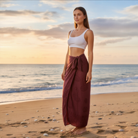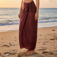 Pareo de rayón en color chocolate y con detalles en burdeos.