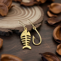 -Pendientes con diseño de pez y anzuelo.