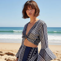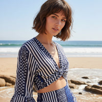 Bolero estampado mediante block print. Esta prenda viene pisando fuerte, y será una de las esenciales este verano.