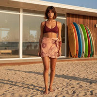 Una de las prendas indispensables este verano es la falda pareo. La nuestra, en versión corta, resulta muy cómoda para ir a la playa, pero en general nos sirve para cualquier plan.