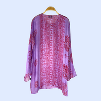 Kurta de tejido clásico en color lila y con detalles en rojo.