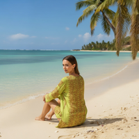 Kurta tejida con un rayón fino y suave con la que no pasarás calor. Además olvídate de tener que elegir qué llevar en tu maleta, esta kurta pesa menos de 200 gramos, y  ¡ocupa menos que un bañador!