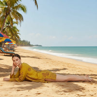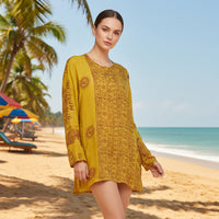 Kurta tejida con un rayón fino y suave con la que no pasarás calor. Además olvídate de tener que elegir qué llevar en tu maleta, esta kurta pesa menos de 100 gramos, y ¡ocupa menos que un bañador!