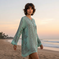 Kurta tejida con rayón suave con la que no pasarás calor. Además olvídate de tener que elegir qué llevar en tu maleta, esta kurta pesa menos de 200 gramos, y ¡ocupa menos que un bañador!