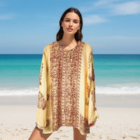 Kurta tejida con un rayón fino y suave con la que no pasarás calor. Además olvídate de tener que elegir qué llevar en tu maleta, esta kurta pesa menos de 100 gramos, y  ¡ocupa menos que un bañador!