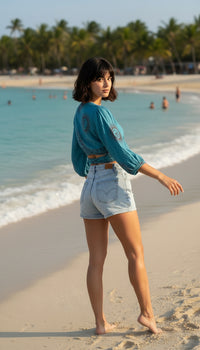 Bolero o Top de color azulado y detalles en burdeos con diferentes estampados disponibles. Esta prenda viene pisando fuerte, y será una de las esenciales este verano.