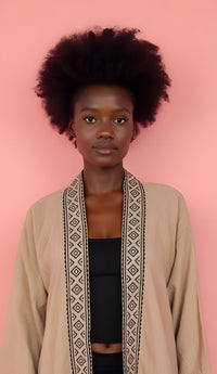 Kimono de algodón, con dibujo hecho con block print.