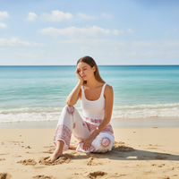 Pantalón recto de color blanco y detalles en rojo con diferentes estampados. Incluye una goma a la altura de la cintura tipo con la que podrás ajustarlo perfectamente.